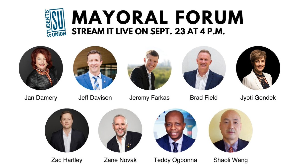 University Of Calgary Students Union On Twitter Check Out The Candidates That Will Be Attending The Mayoral Forum Tomorrow Sept 23 Tune In Online At 4 P M On The Su Website Https T Co Cwvr0cp3ys