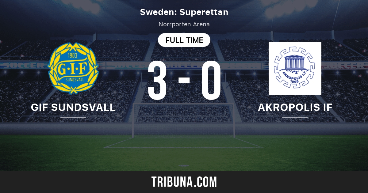 Sun 31 Oct AKR - TRE. GIF Sundsvall vs Akropolis IF head to head record shows that of the recent 3 meetings theyve had GIF Sundsvall has won 0 times and Akropolis IF has won 1 times 2 times they has ended in a draw. GIF SundsvallAkropolis 12 02 01 Nikola Vasic 9 02 Marcus Burman 12 12 Jamie Hopcutt 78.