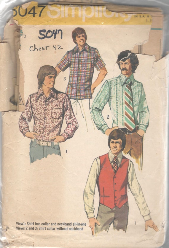 1970s Simplicity 5047 Mens Shirt And Vest Pattern Disco Style Etsy